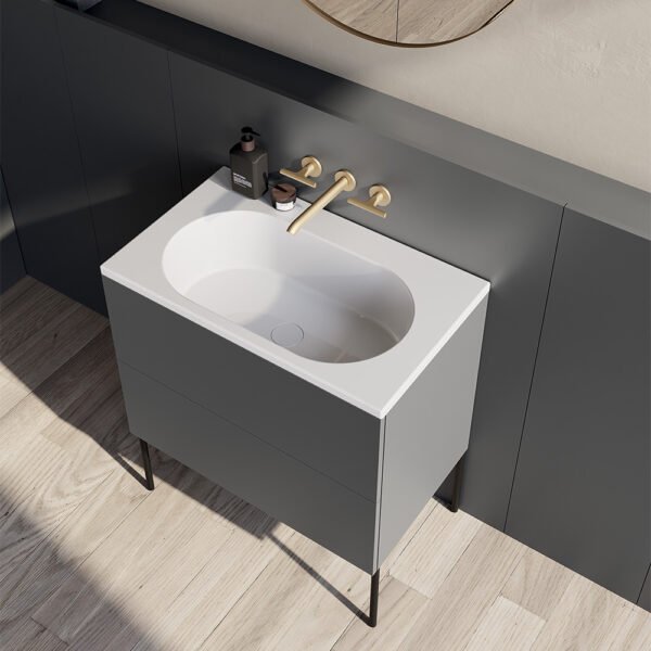 Lavabo in ceramica 80×48 cm senza foro rubinetteria con mobile 2 cassetti Collezione 20.26 Colavene