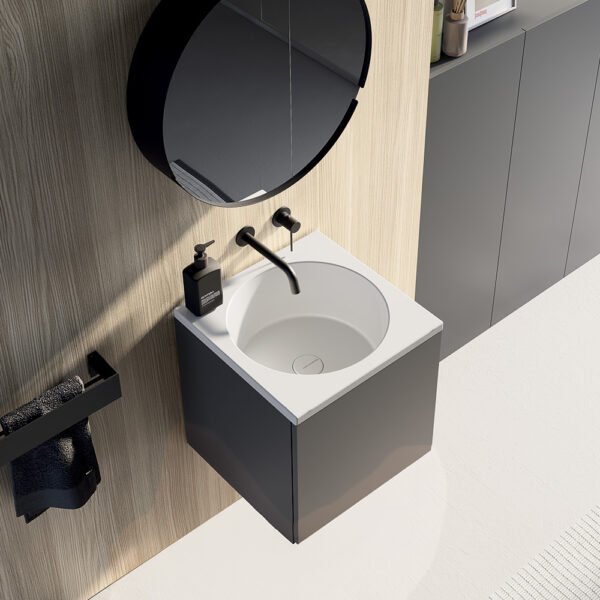 Lavabo in ceramica 48×48 cm con foro rubinetteria e mobile sospeso un anta Collezione 20.26 Colavene