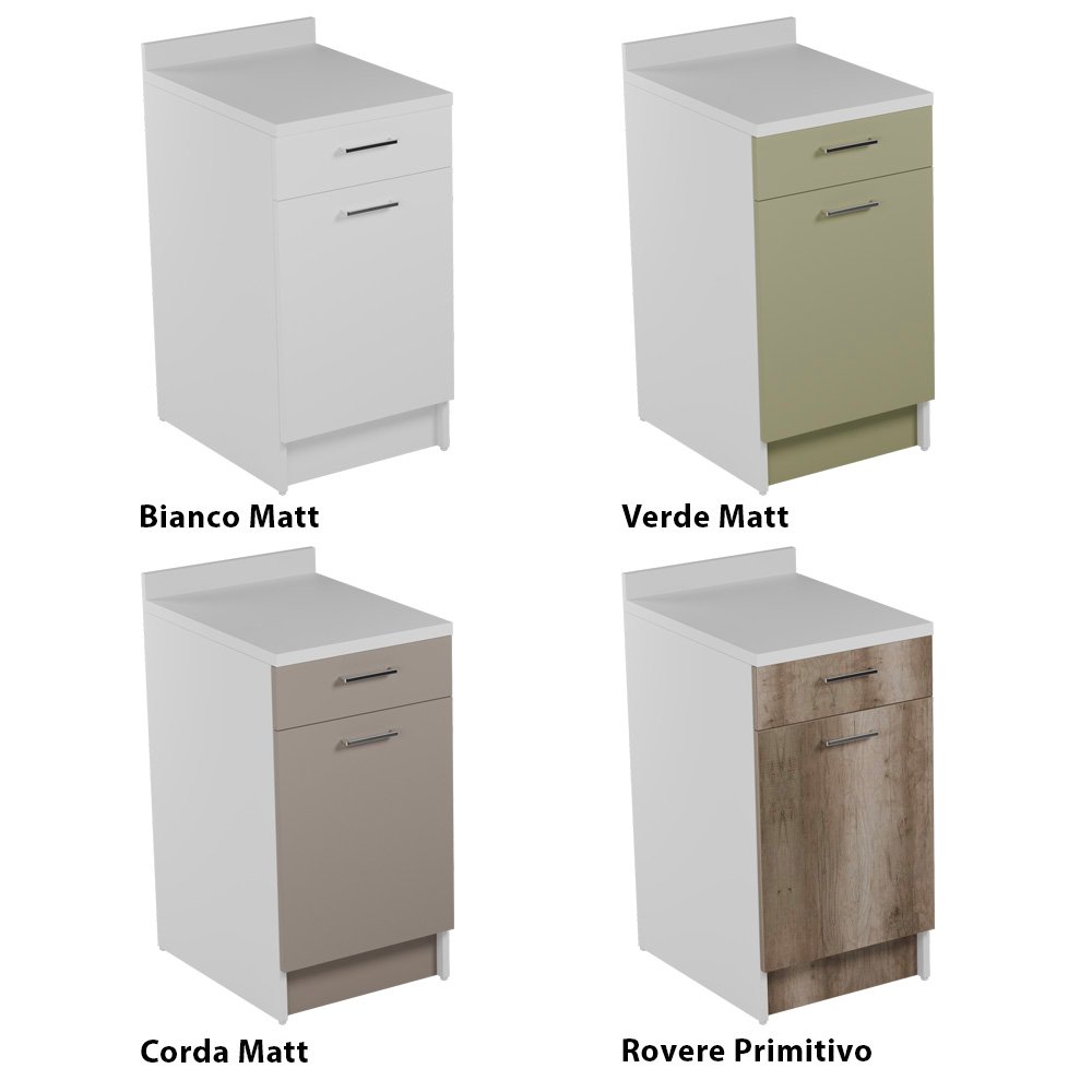 Colore frontale: Bianco matt, verde matt, corda matt, rovere primitivo.