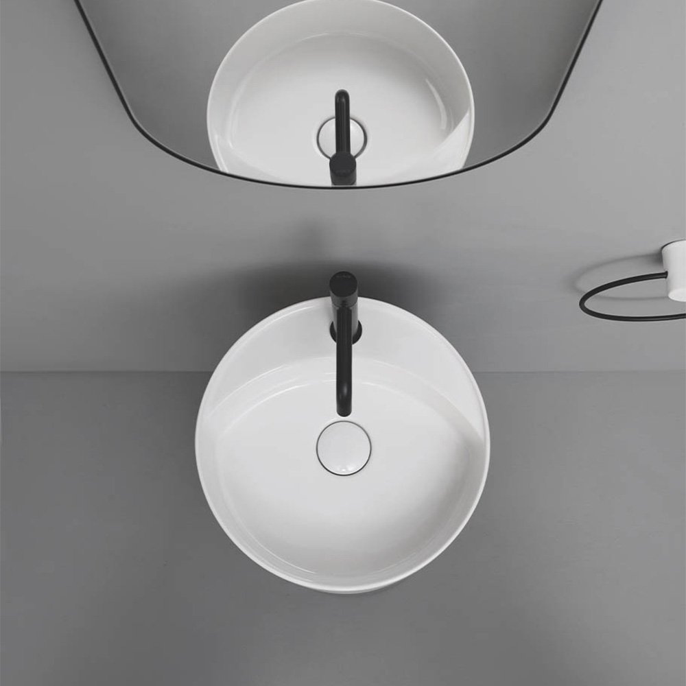 Lavabo da appoggio in ceramica con piano rubinetteria Collezione Mate AXA ceramica