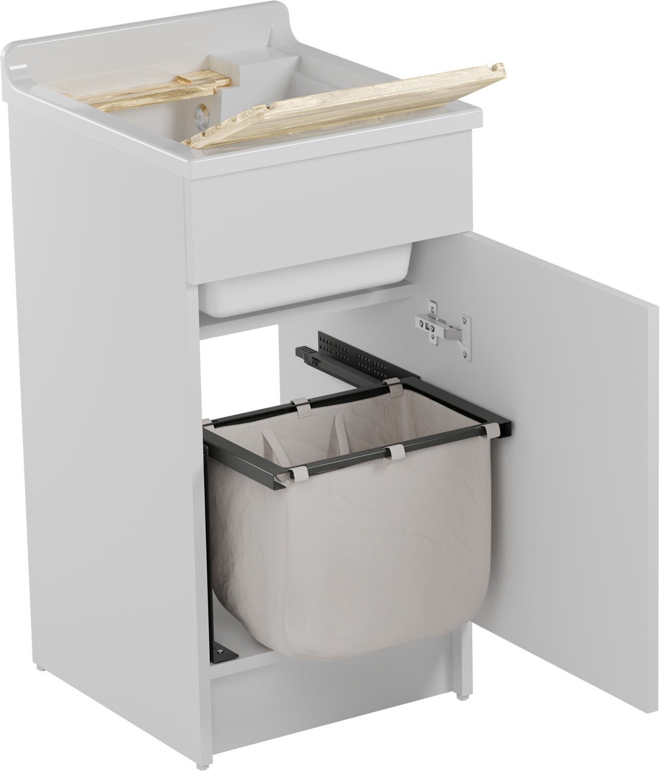 Fornito di cestello portabiancheria (scorrevole ed estraibile).