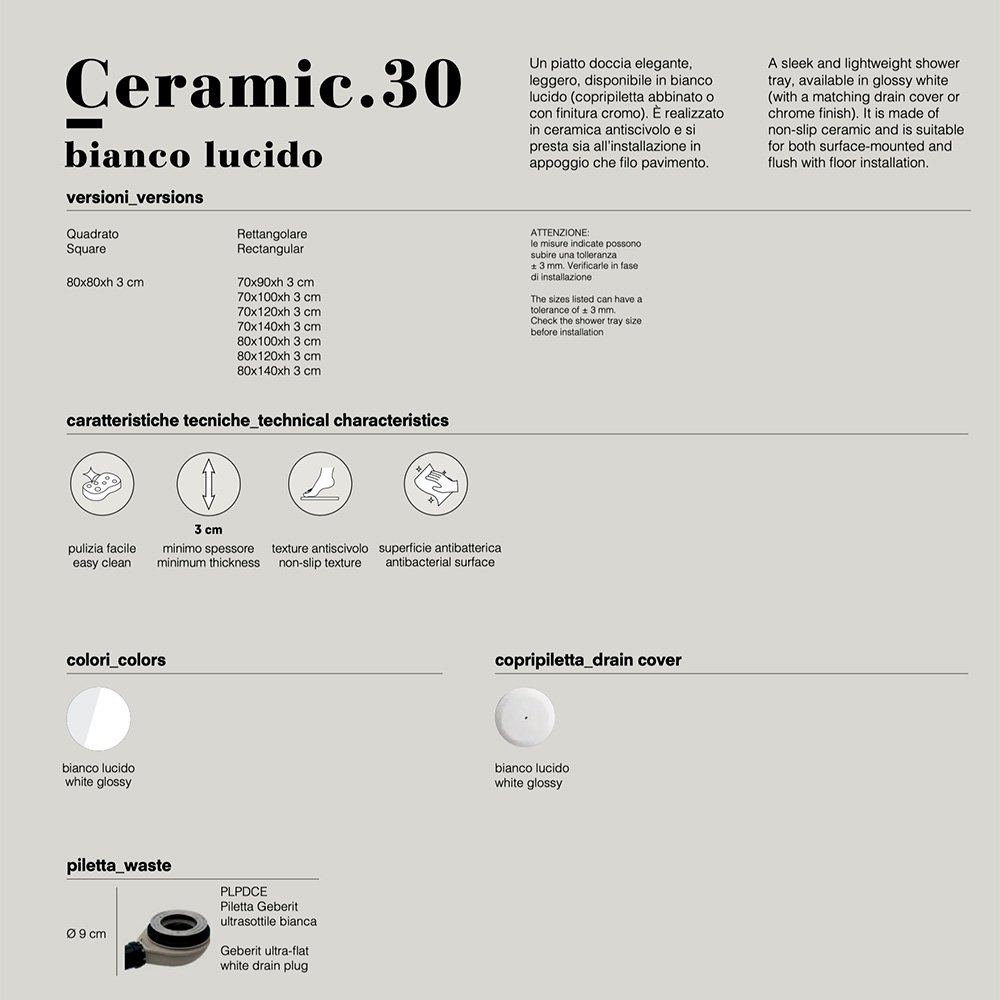 Piatto doccia in ceramica antiscivolo quadrato o rettangolare Collezione Ceramic.30 Tamanaco