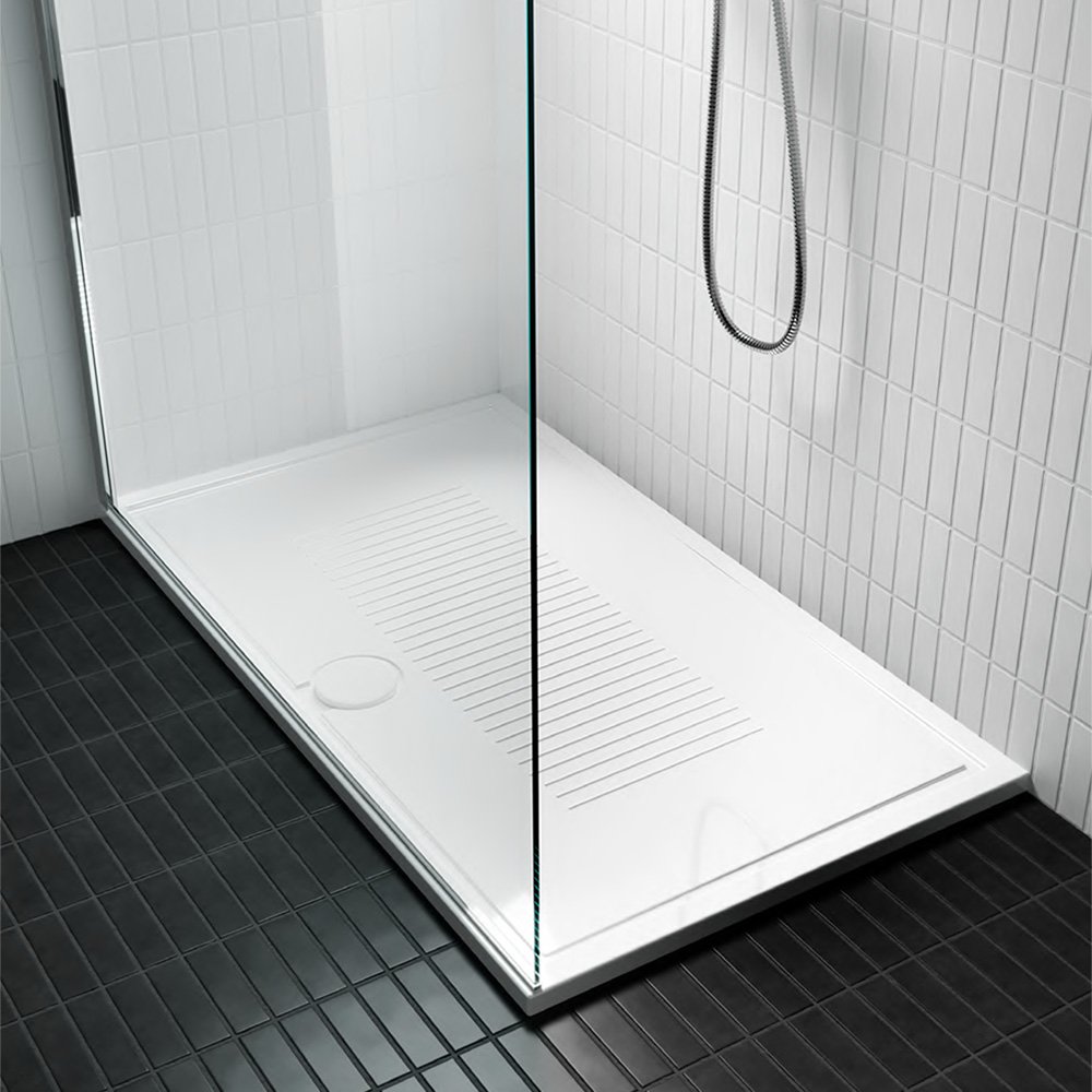 Un piatto doccia elegante, leggero, disponibile in bianco lucido con “Copripiletta abbinata Bianco Lucido”.